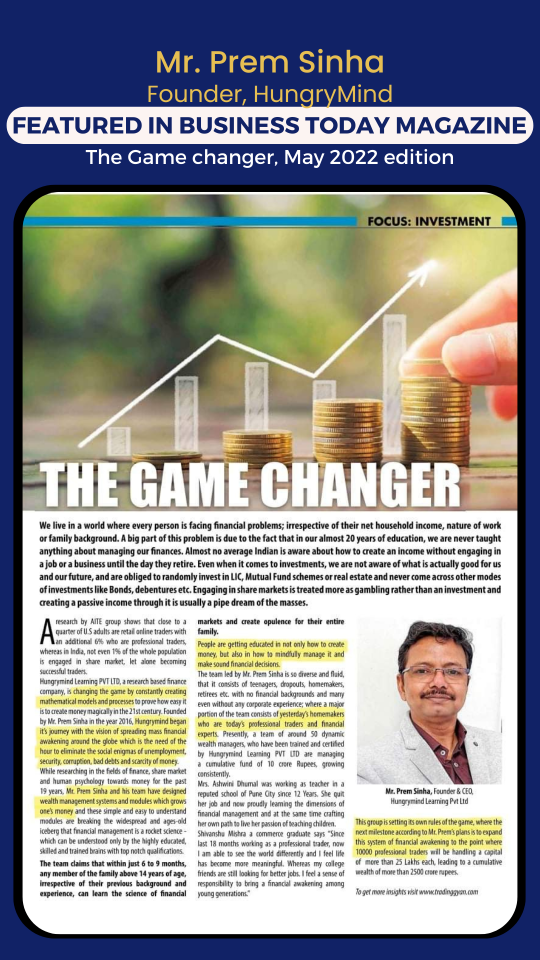 With the aim of simplifying money-making, Prem Sinha, his wife Archana Sinha, and their team have been researching various investment models for the past 21 years. As a result, HungryMind Learning Pvt Ltd has developed several mathematical systems that can assist anyone, regardless of age. Whether you're a housewife, a student, or a retired person, you can learn how to earn money easily in just a few months and bring prosperity to your family.